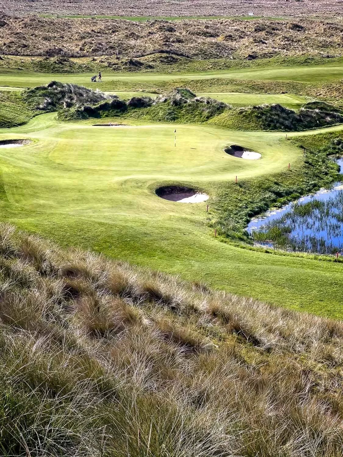The newer course, it is a mix of about half the holes similar to The Old Links (and in neighbouring areas) with the other half cut into far higher dunes. Some very special par 3s (big drops) among those holes and far more challenging / attractive.